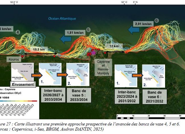 Le littoral de Guyane fait partie des côtes les plus instable au monde. Il est constamment soumis à des phénomènes d’érosion-accrétion importants. Ces phénomènes sont sous influence du passage successif de bancs de vase issus de la décharge sédimentaire du fleuve de l’Amazone