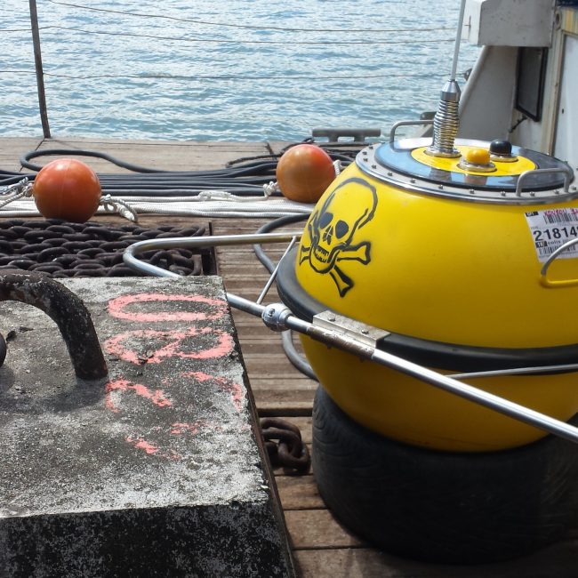 Début décembre, le houlographe de l'ODyC mouillé au large de Kourou a dérivé jusqu'au Guyana. Aujourd'hui, il est de retour à bon port.